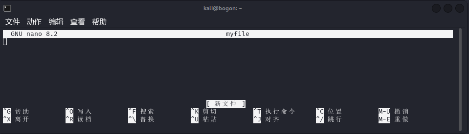 nano myfile进入nano 后会显示以下界面: