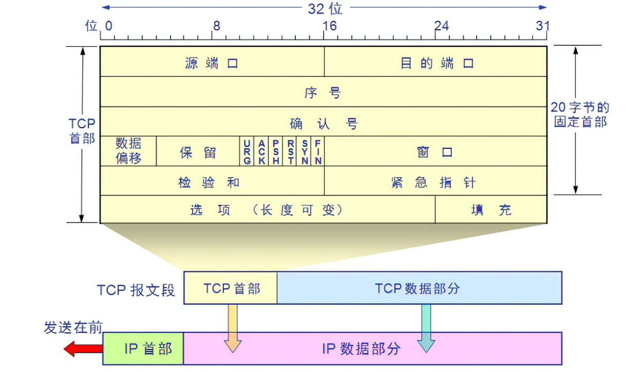 - 首部长度:用于记录tcp数据报首部的长度,一般为20字节,实际值为首部长度除以4。