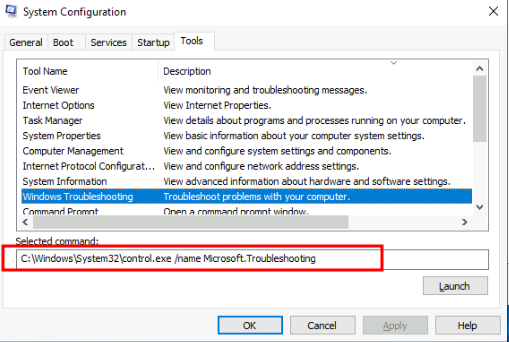 答案: C:\Windows\System32\control.exe /name Microsoft.Troubleshooting